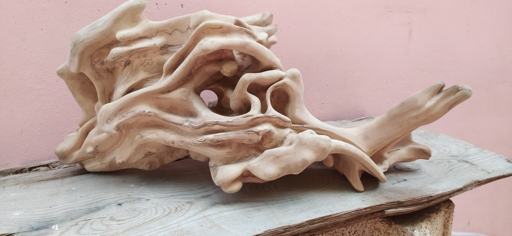 Everything begins by observing the piece of wood and I let myself get carried away by my imagination